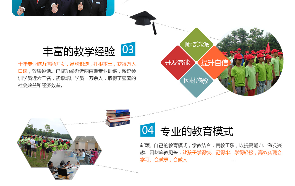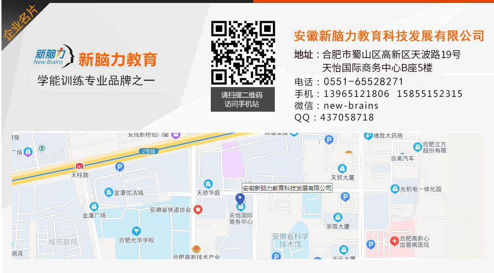 新脑力教育(安徽新脑力教育科技发展有限公司,2008)是国内致力于脑力开发暨记忆思维研究、大脑潜能研究与开发、学习力实用技术及相关物化产品研发与服务的教育科技公司。为大中小学生提供多方位教育服务:测评、方案、实施。同时开展企业培训服务和项目合作。主要开设“注意力训练”、“记忆思维训练 (学能训练)”、“多元智能开发”和“综合学能训练”等课程和培训。 新脑力教育坚持科技先进、造福社会、价值原则及共赢的理念,总结了脑力研究的全新方法体系,理论研究指导应用研究,教研相长。新脑力拥有一支朝气蓬勃、 吃苦耐劳、热爱脑力开发事业的激情团队。在项目上具有自己的市场竞争优势。公司自2008年成立以来,立足科教名城合肥,已成功举办近百期专业训练, 系统参训学员近六千名,初级培训学员一万余人,取得了一定的社会效益和经济效...